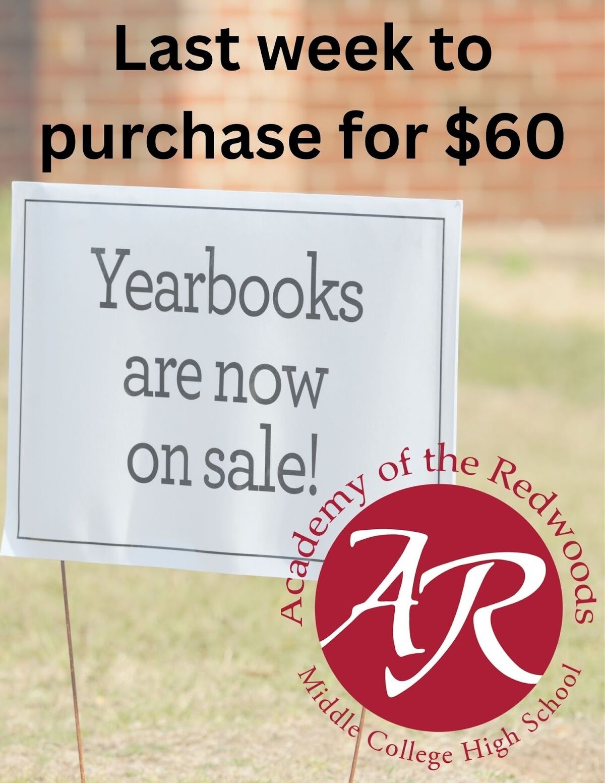 To Pay at School: Bring cash or a check made out to Academy of the Redwoods to the AR Office.